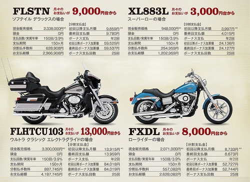 店頭試乗車5台(XL883L,XL1200L,FXDL,FLSTN,FLHX)プラス