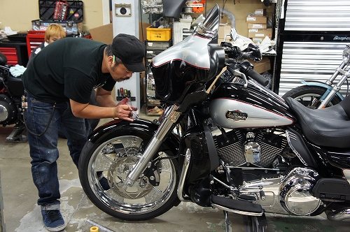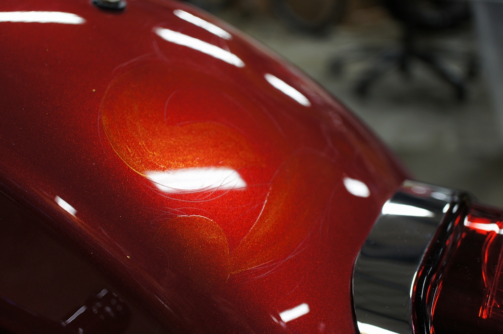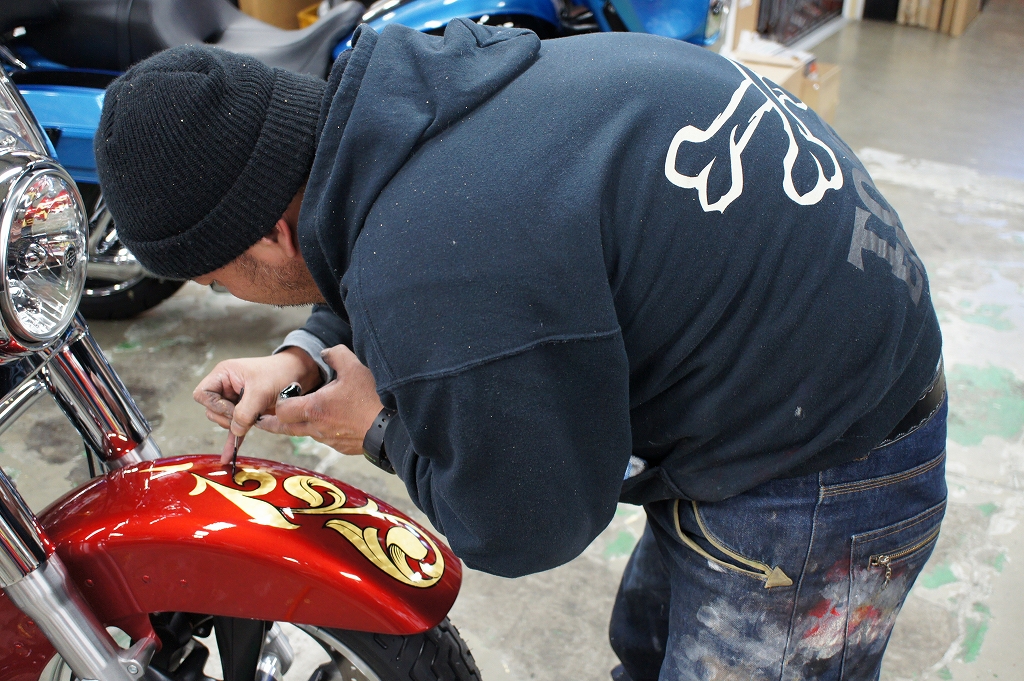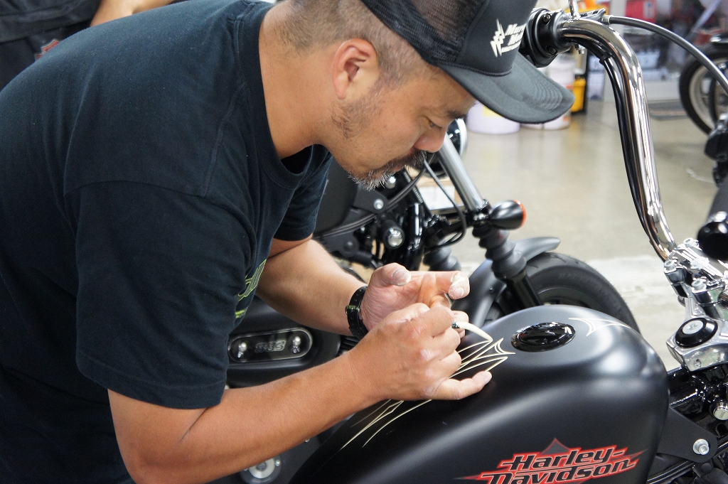 ハーレーへのペイントは、残念ながらあと一台のみと成ります。