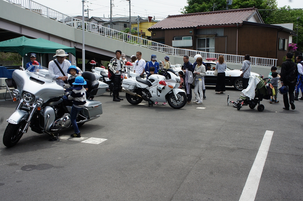 パトカー、白バイ、白バイサイドカー。